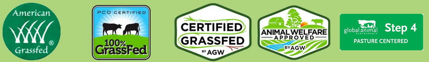 Feed lot cows live a pretty gnarly life while they are on the feed lot, but cows that spend 100% of their life grazing on grass live kind of the ideal cow lifestyle. They do have a couple painful medical procedures but not really any that lead to chronic pain. An 100% grass fed cow basically just hangs with its parents and eats grass and walks around until it is slaughtered early. They don’t really develop any of the gnarly internal problems from digestion issues that feed lot cows can develop, because grass fed cows are eating what cows are designed to eat.